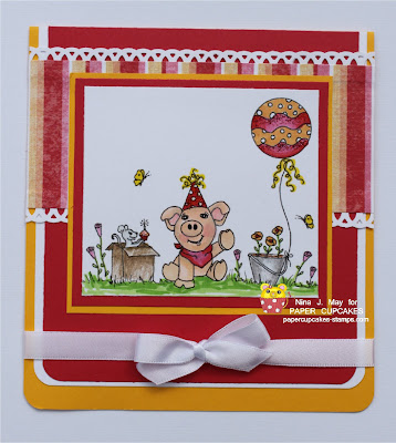 Image: Party Pig by Paper Cupcakes-Stamps (I didn't have my image in square that is why the lines are funny on that image, and after I printed it I didn't want to waste card stock so I just went with the minor flaw)